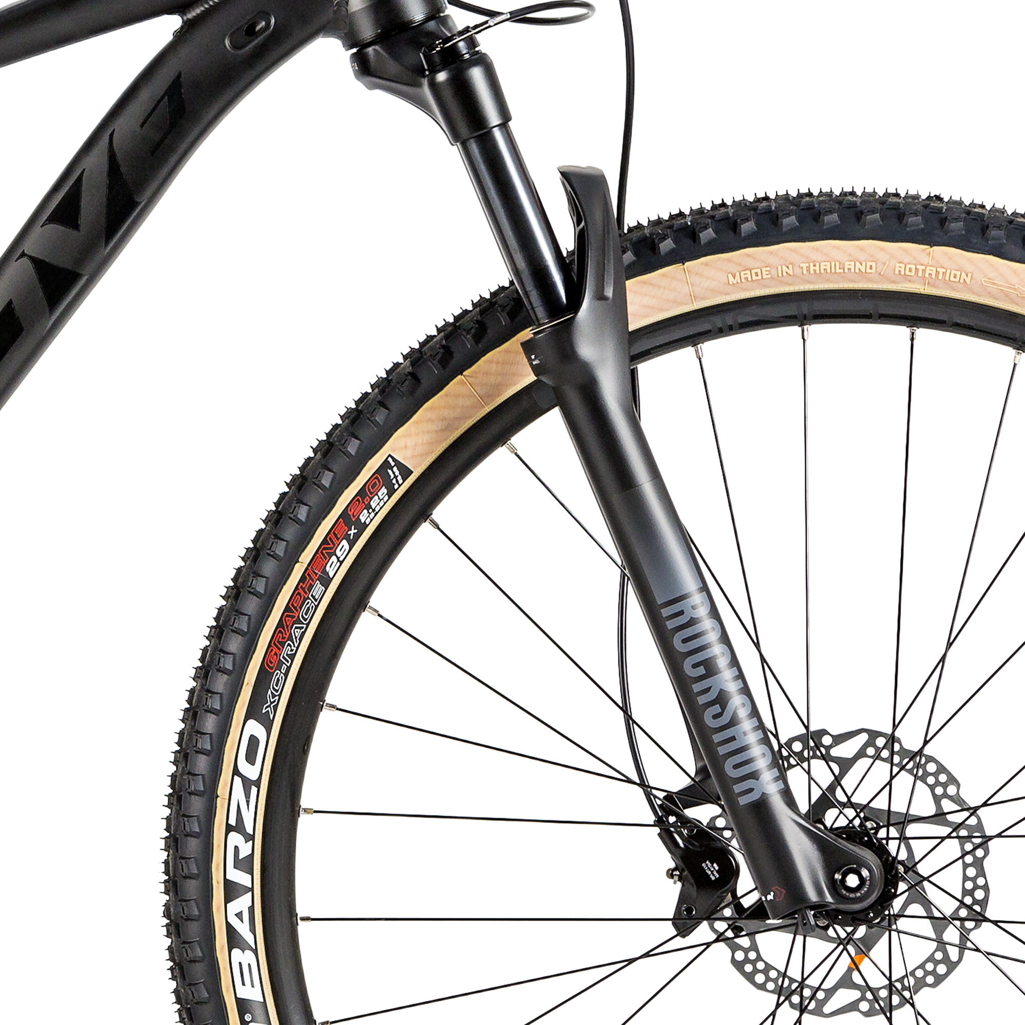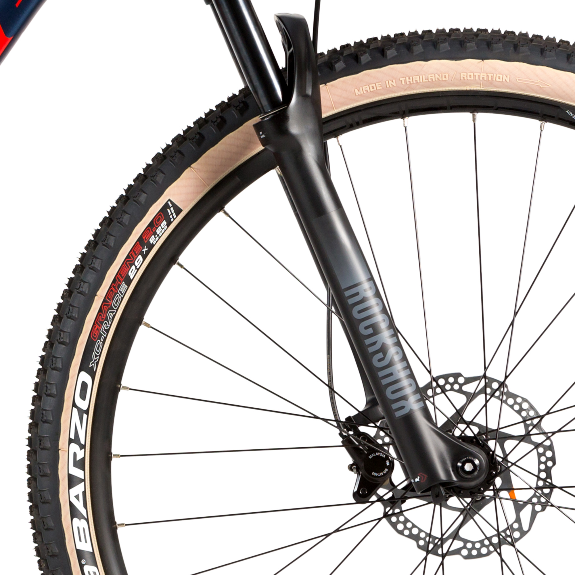 A suspensão Rockshox Judy Silver Solo Air Tapered 100mm proporciona praticidade em suas trilhas, assim como os aros preparados para Tubeless e os pneus Vittoria XCR Barzo e Mezcal de 2.25.