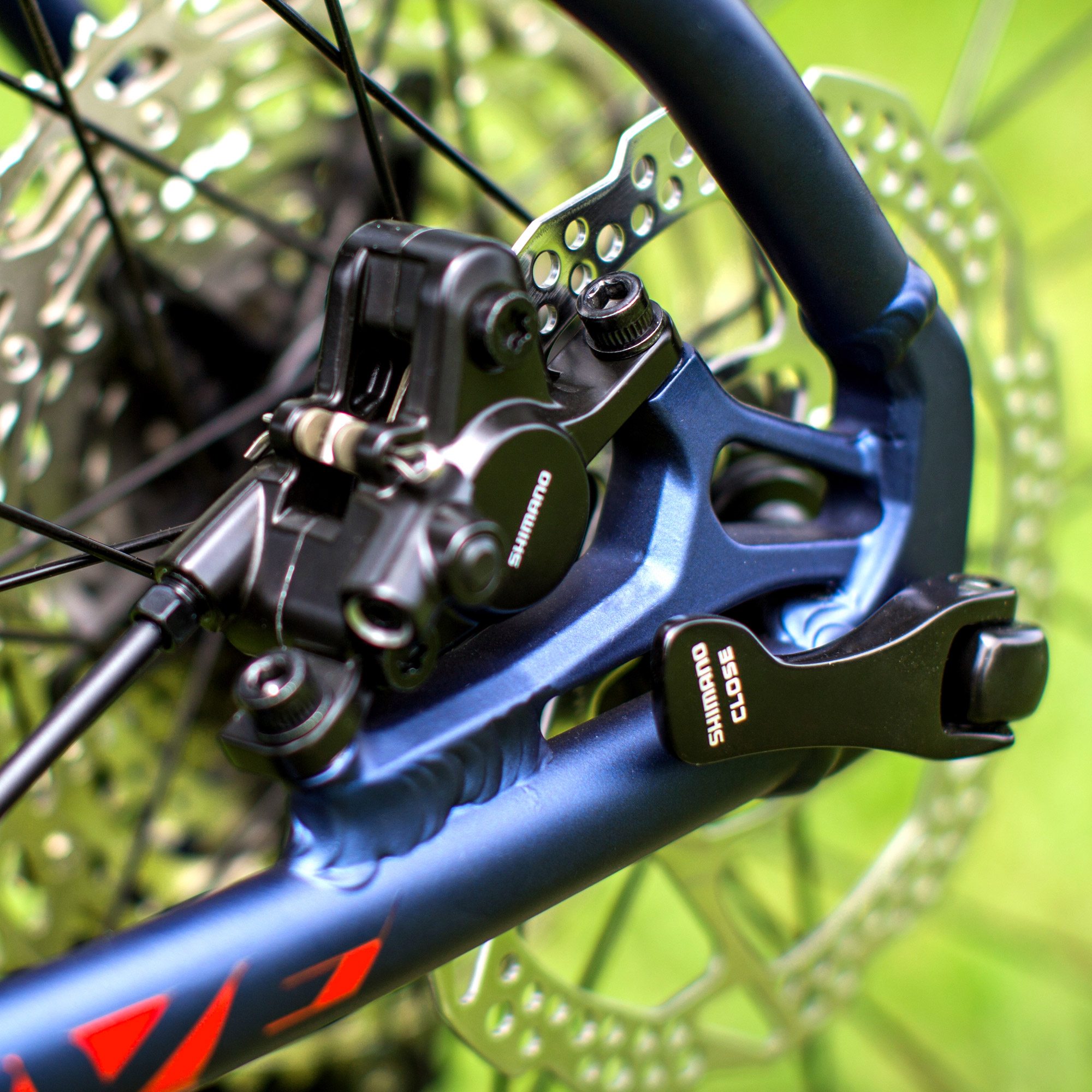 Os freios a disco Shimano hidráulico proporcionam uma frenagem mais segura e confiante. Os cubos Shimano Boost completam o conjunto, e assim a Groove Riff 70 se torna a bike em alumínio perfeita para você ter alta performance e o melhor rendimento em suas trilhas e competições.